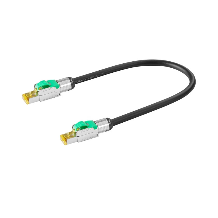 RJ45 patch cord pre-wired with Cat 7 S/FTP 4x2x24AWG PUR Ethenet cable, custom lengths